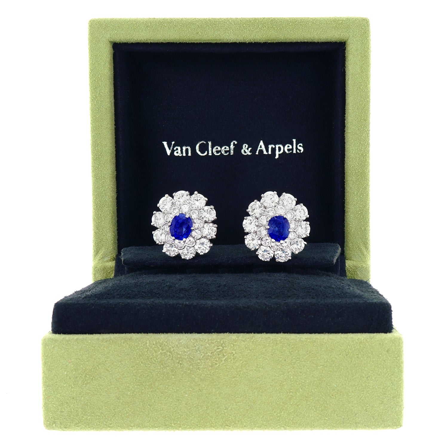 Van Cleef & Arpels Diamond and Sapphire set Platinum Earrings