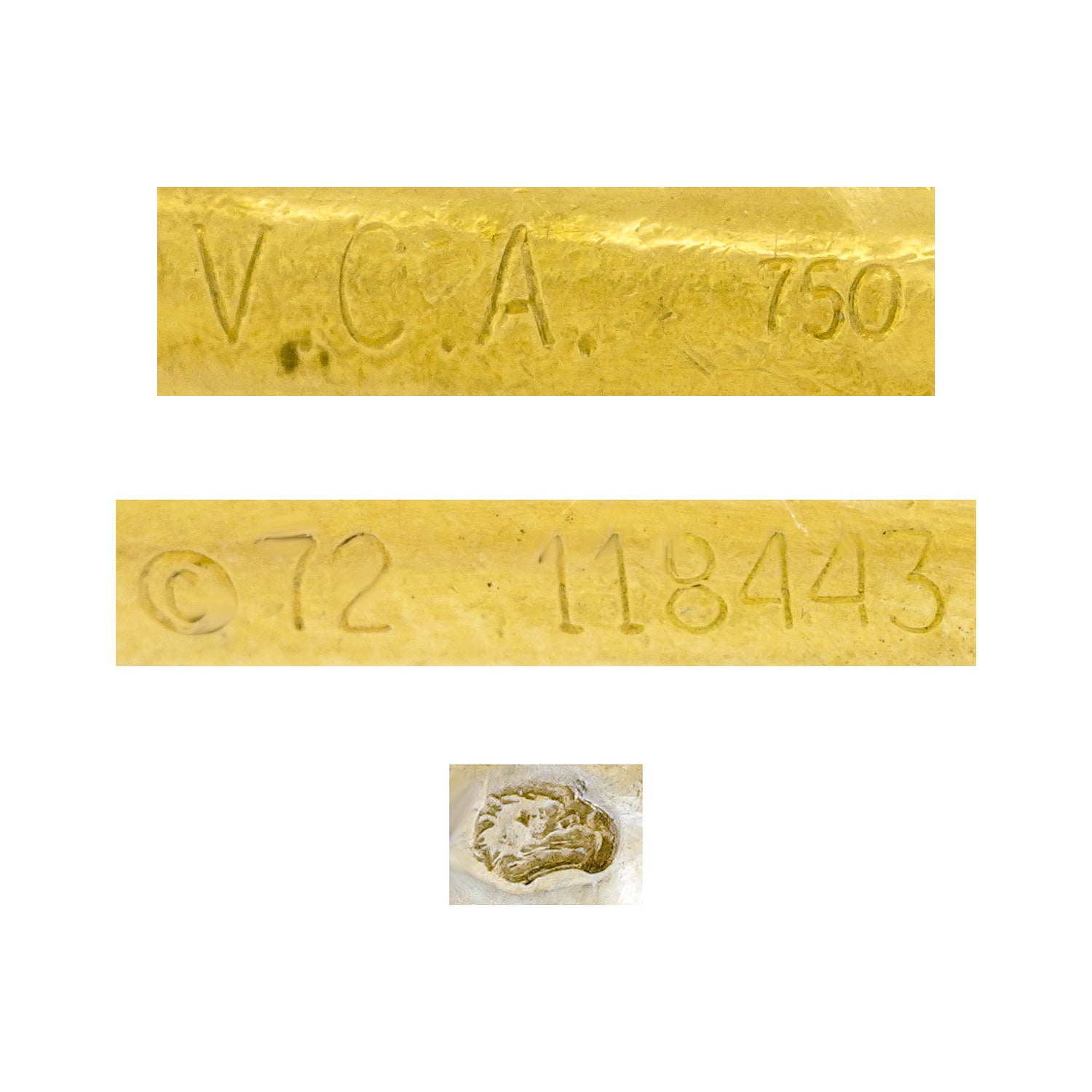 Hallmarks: VCA, 750, copywright symbol, 72, 118443 French Eagles head for 18k