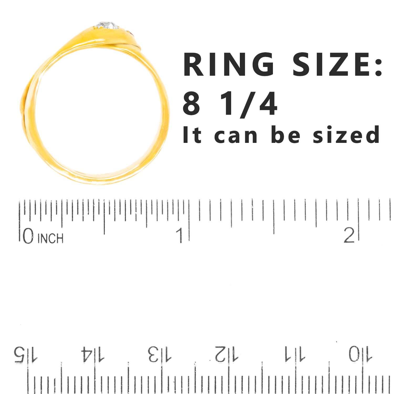 Ring Size: 8 1/4, it can be sized.
