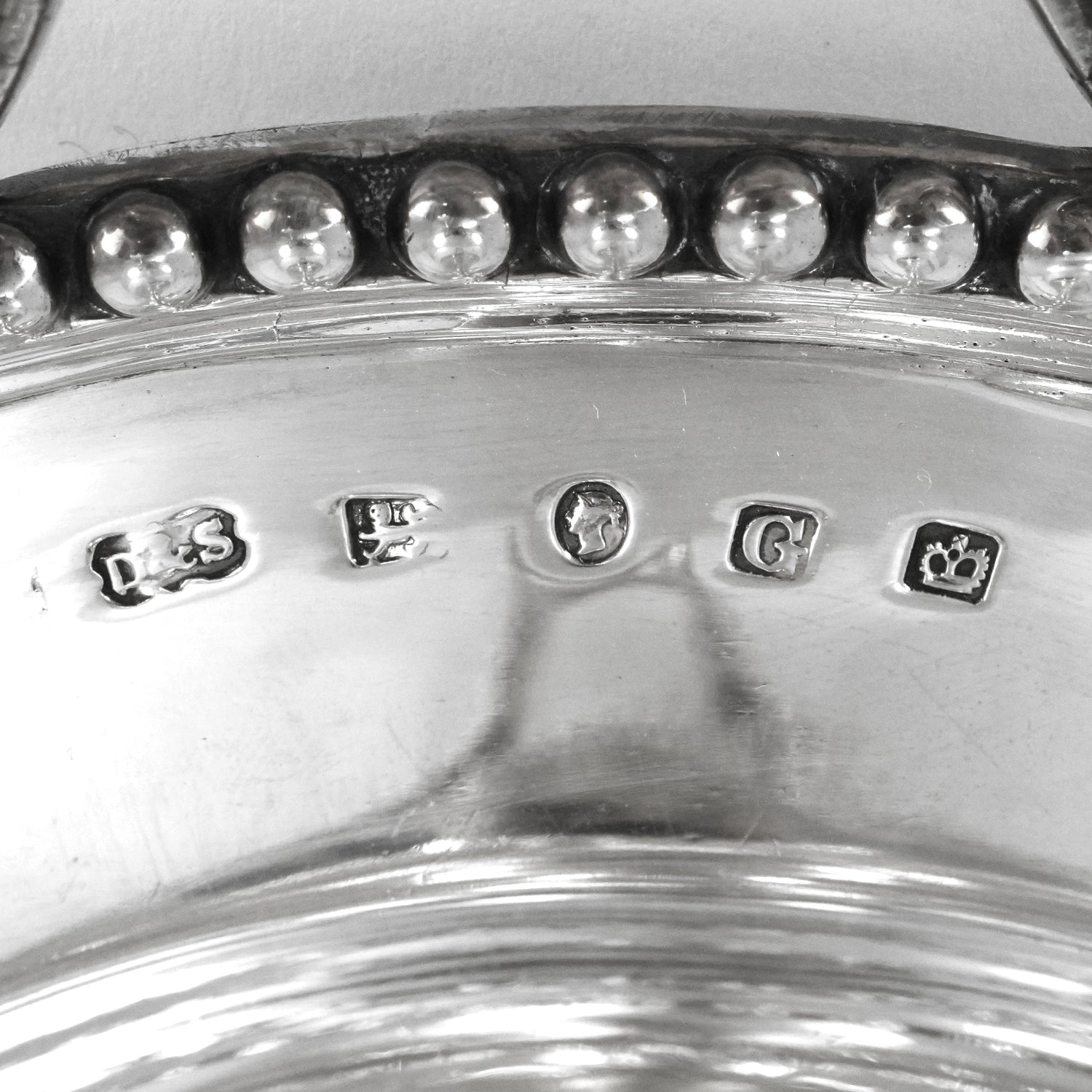 D&S hallmark for James Dixon & Son, Lion Passant for Sterling, Duty Mark, date letter G in a cartouche for 1850, and Crown mark for Sheffield.  Royal Coat of Arms