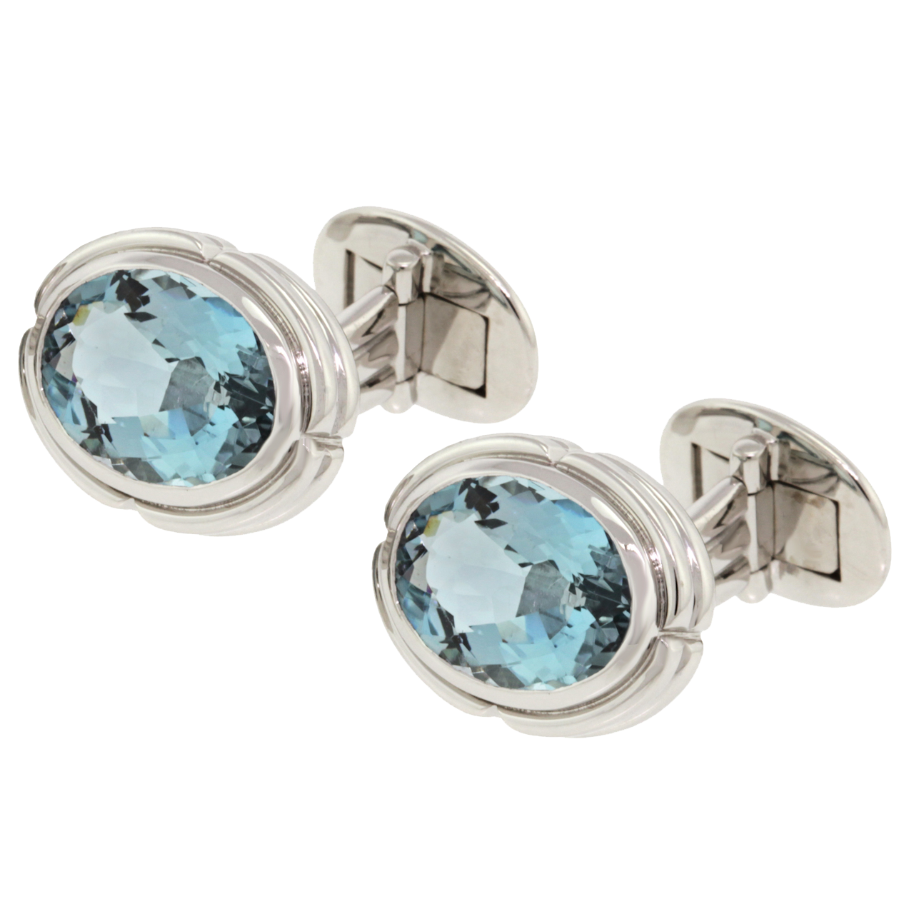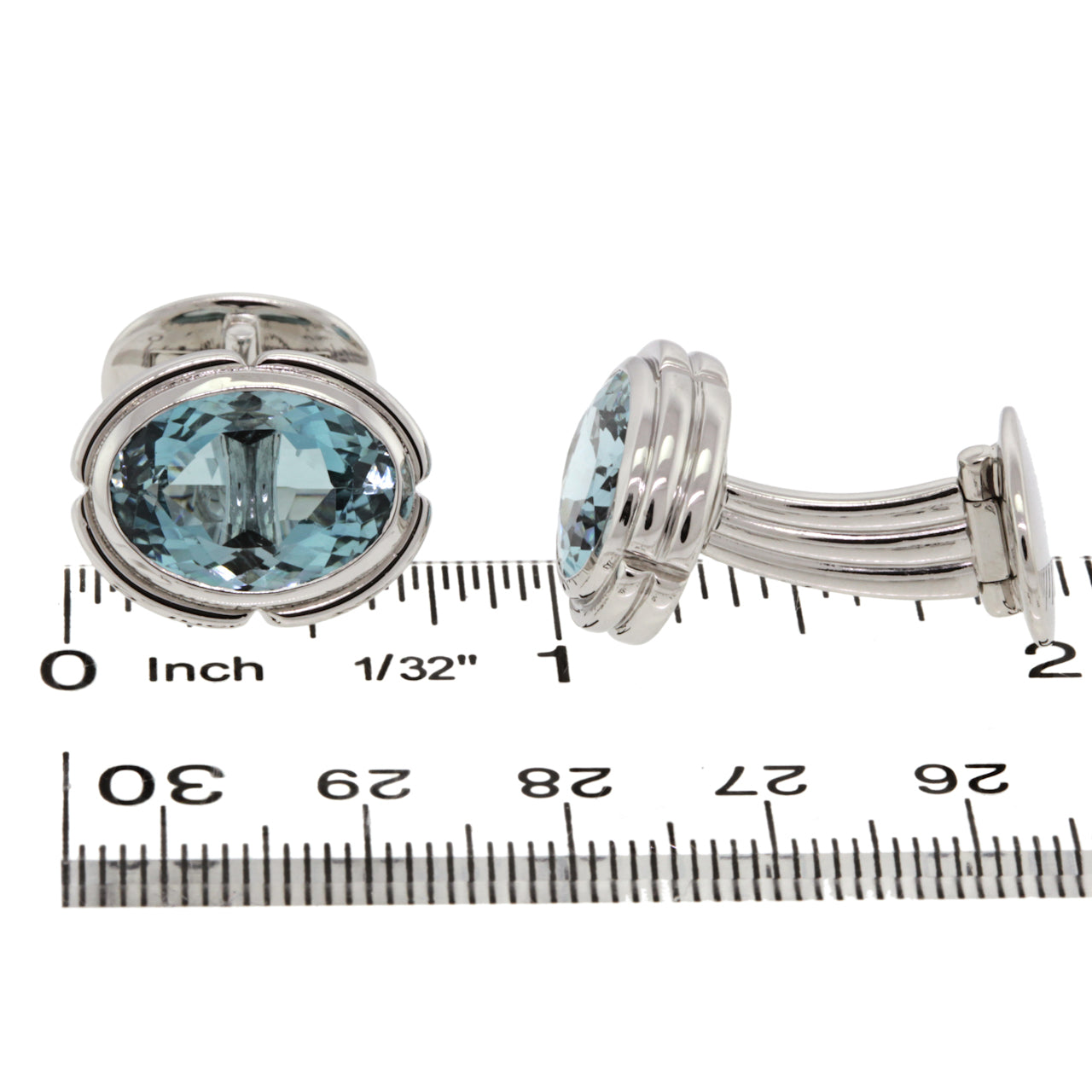 Remarks from Lawrence Jeffrey: "Aquamarine of this size and quality are seldom used in cufflinks."